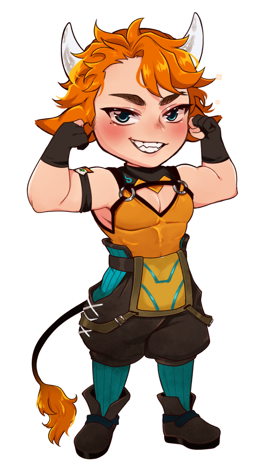 Zeke is the last surviving Kumiho from his village and was taken in by cowfolk when he was young. Over time, he started to take on the appearance of the people that raised him and forgot his past. After his adopted family died, he found a journal that talked about his past. He continues his cow dad's footstep and runs a shop, selling produce, baked goods, things he made.Zeke has made alot of friends over the years and decided to go on adventures just like his new friends!